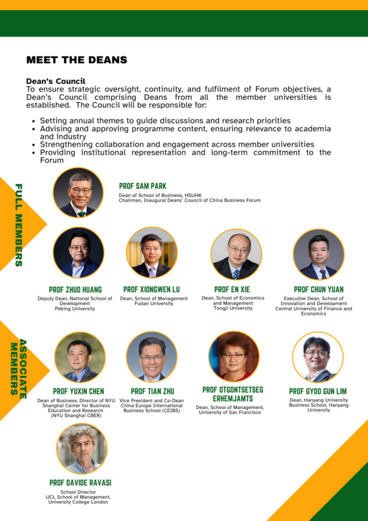 With participation from distinguished Deans, faculty members, and industry leaders, the Forum will facilitate meaningful dialogues between leading scholars and business professionals that bring together thought leadership and practical insights into the evolving Chinese business landscape.