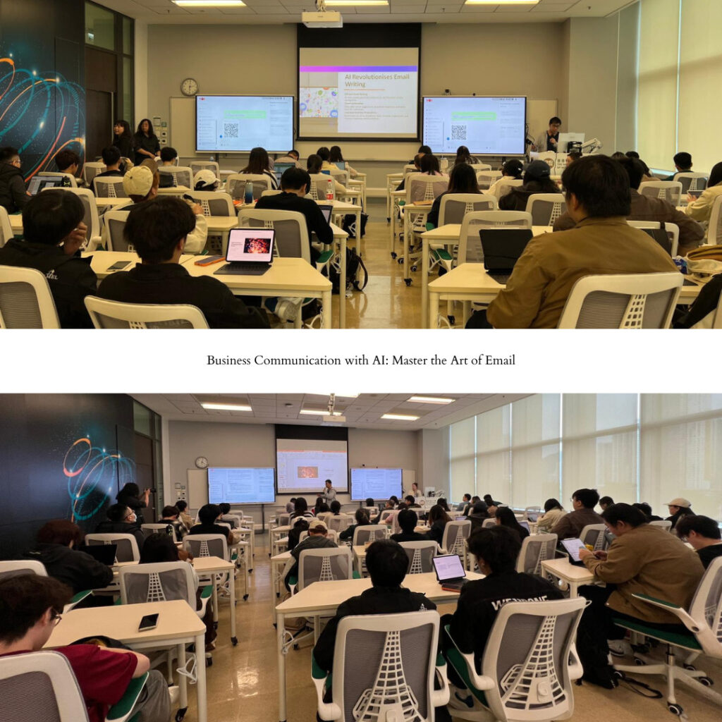 The workshop also equipped students with practical strategies to work confidently with AI tools while maintaining their own voice and communication intent—an essential skill for professional correspondence in today’s AI-augmented workplace.